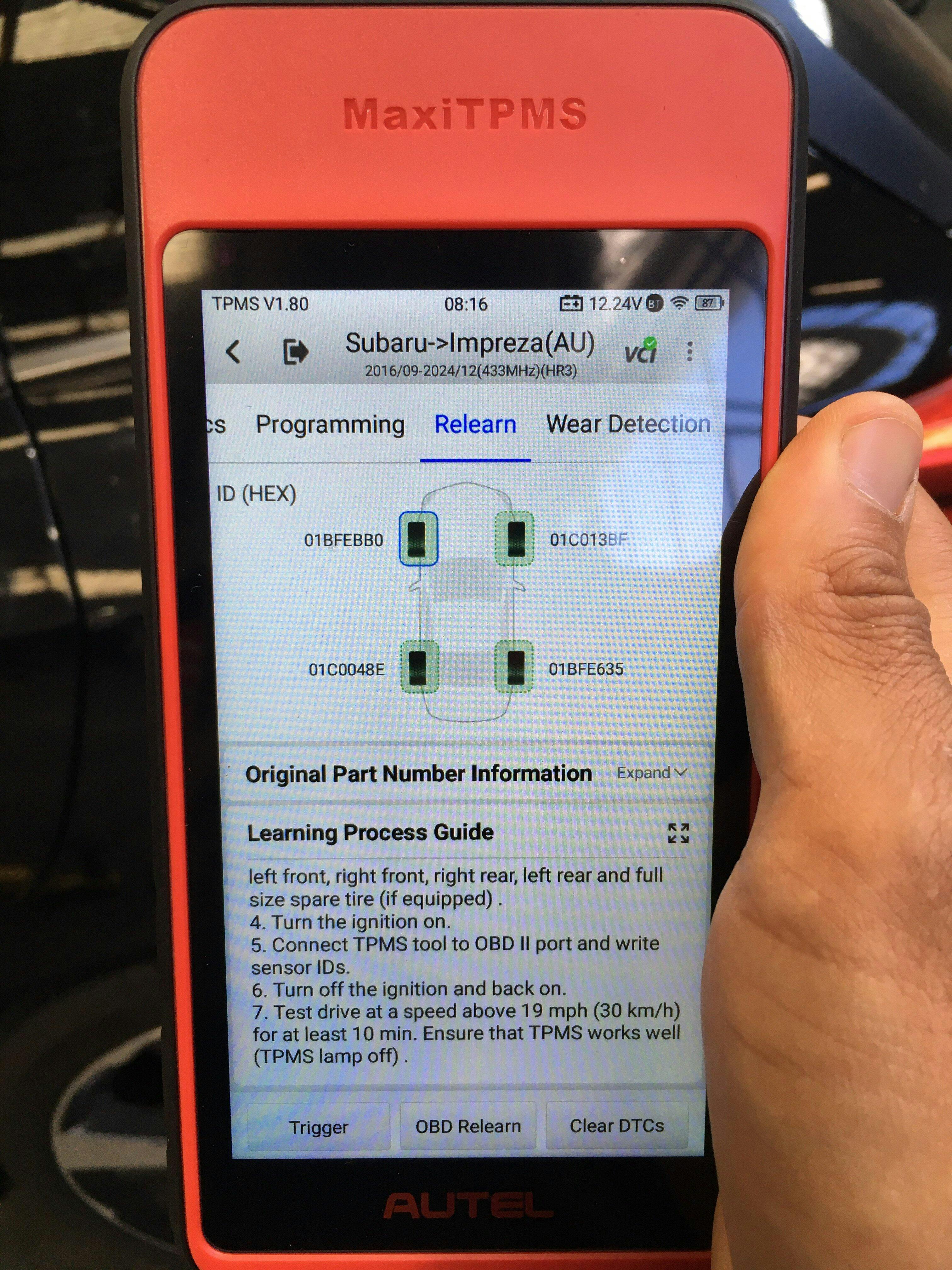 Automatic Relearn: For some vehicles, the Relearn function can be completed automatically by driving, which makes it quite easy to do a complete set of sensor replacement operations on your own.